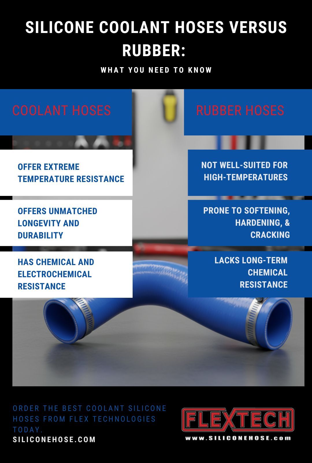 The coolant hoses in your vehicle's engine are critical for regulating temperature, and the material they're made from—rubber or silicone—is a major factor in performance and longevity. At Flex Technologies, we see the shift toward silicone hoses as a clear choice for superior thermal management and durability, especially in demanding applications. While traditional rubber (often EPDM) hoses have been the standard, silicone offers compelling advantages you need to consider.